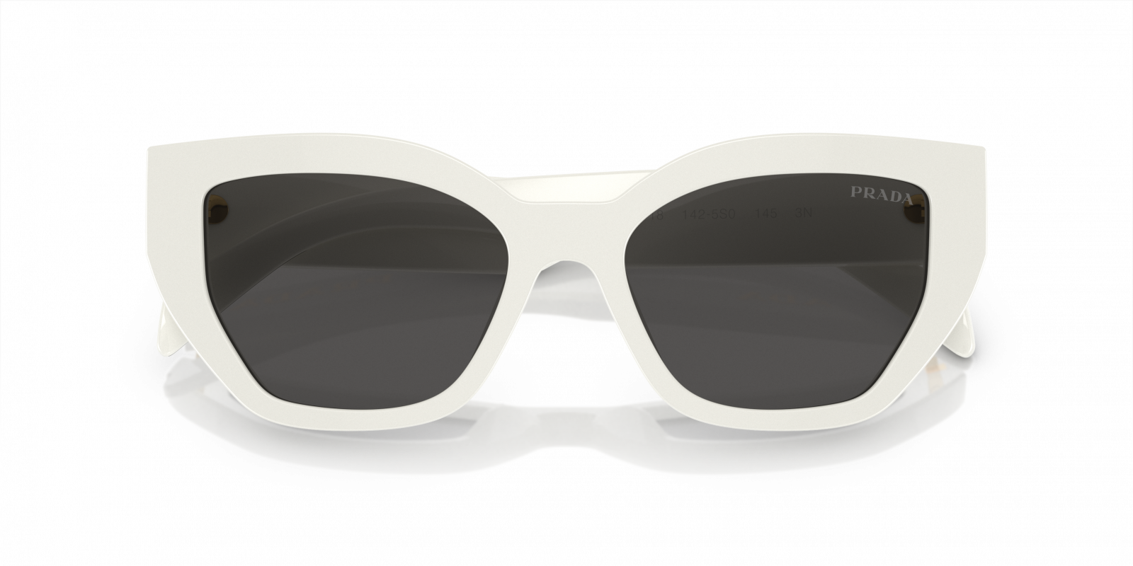 Τα γυαλιά ηλίου Prada διαθέτουν κομψό cat eye σχήμα με κοκάλινο σκελετό σε λευκή  απόχρωση και σκούρους γκρι φακούς. Το σχέδιο προσφέρει θηλυκότητα και εντυπωσιακή παρουσία, ενώ η premium κατασκευή εξασφαλίζει άνεση και σταθερότητα. Ένα elegant μοντέλο που ταιριάζει ιδανικά σε οβάλ, καρδιά και τετράγωνες γραμμές προσώπου.