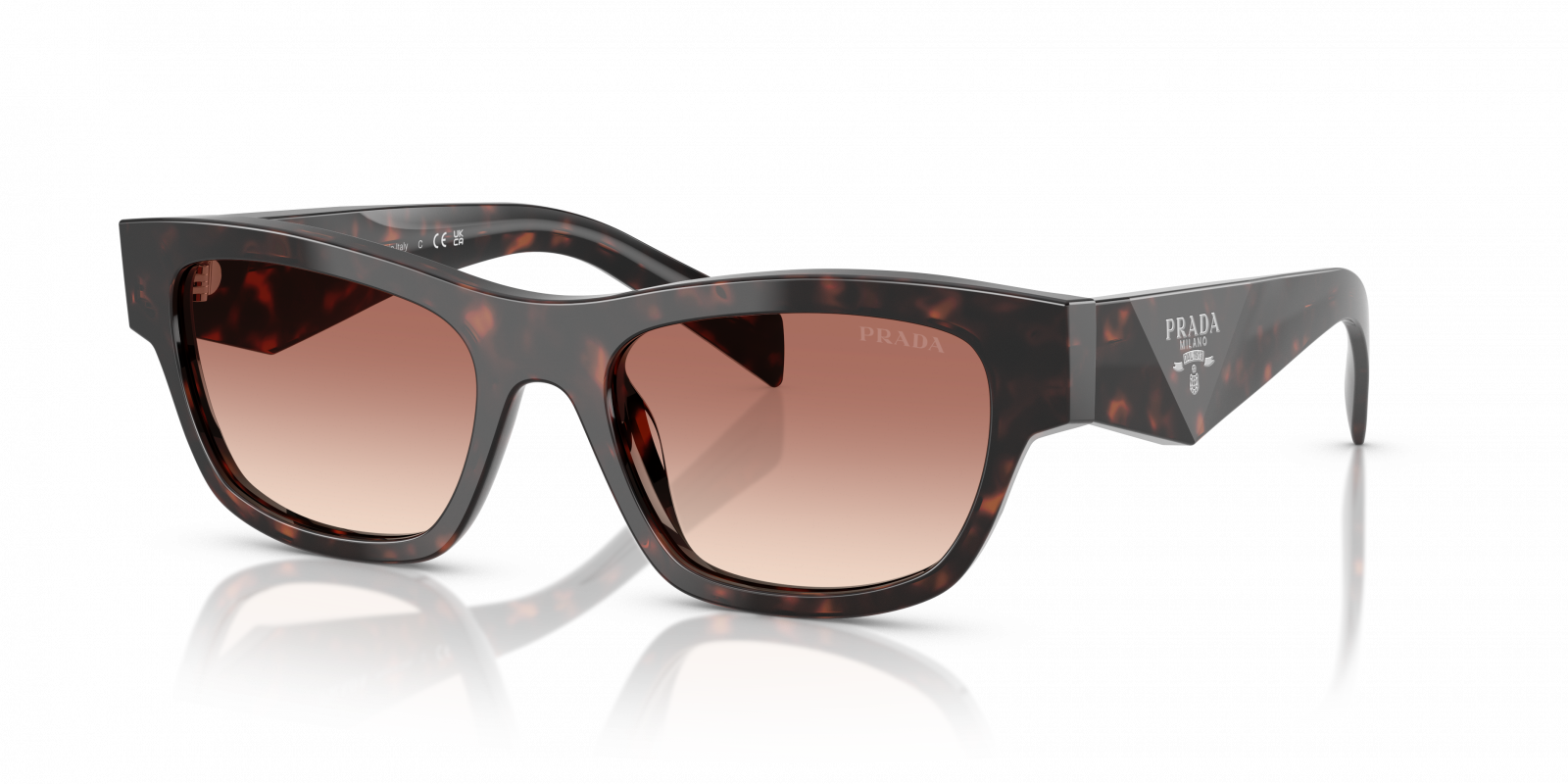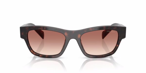 Κομψά γυαλιά ηλίου Prada σε σχήμα cat-eye/πεταλούδα, με κοκκάλινο ταρταρούγα σκελετό και δίχρωμους φακούς καφέ–μπορντό. Προσφέρουν υψηλή προστασία UV και πολυτελή εμφάνιση.