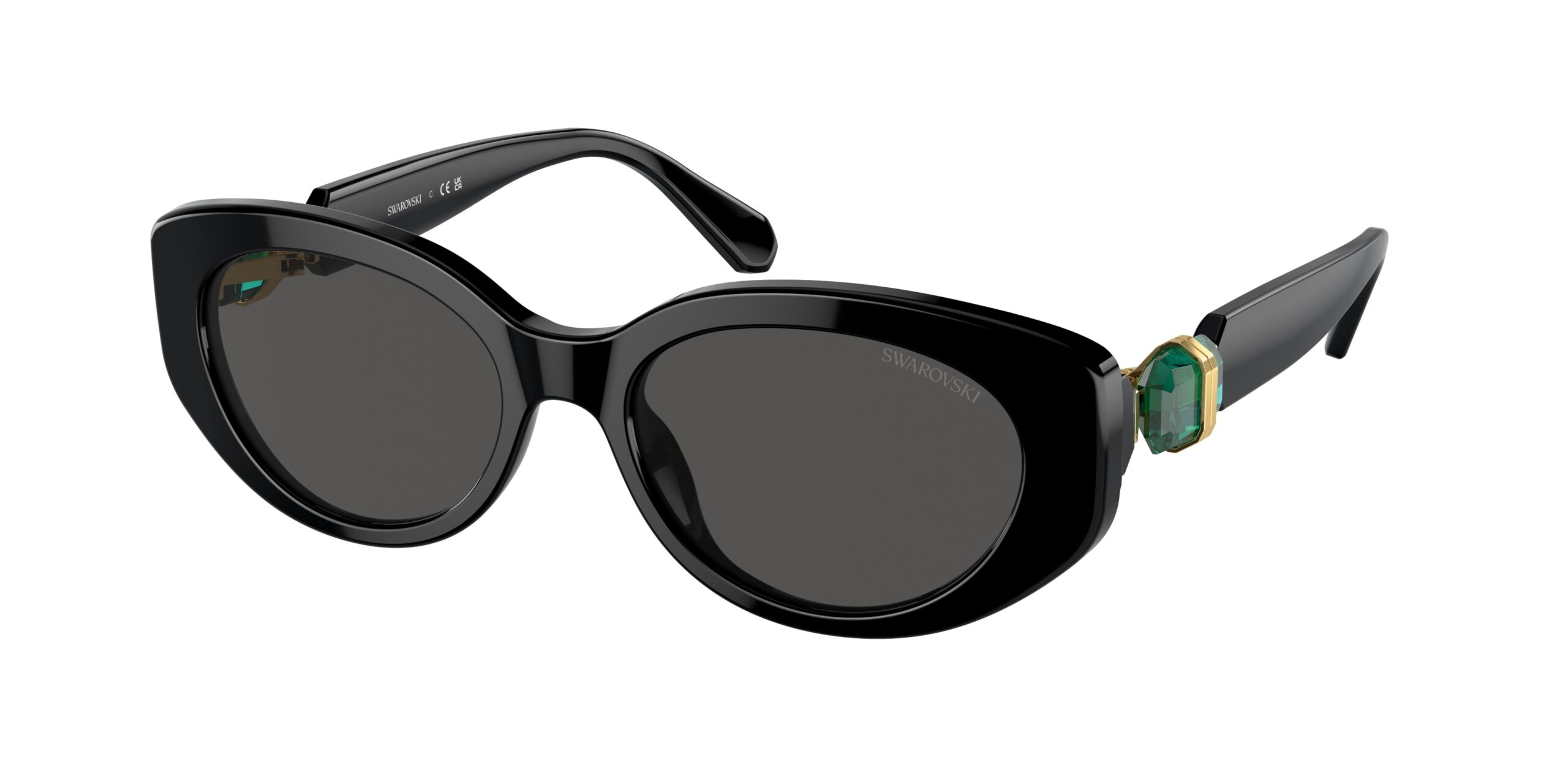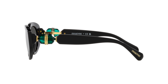 Γυαλιά ηλίου Swarovski σε κομψό οβάλ σχήμα με μαύρο κοκάλινο σκελετό και σκούρους γκρι φακούς που εξασφαλίζουν άνετη και ασφαλή UV προστασία. Ιδανικό διαχρονικό στιλ.